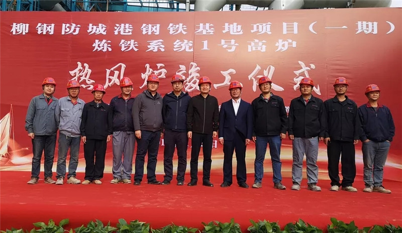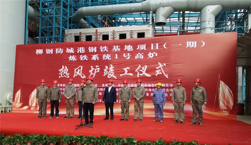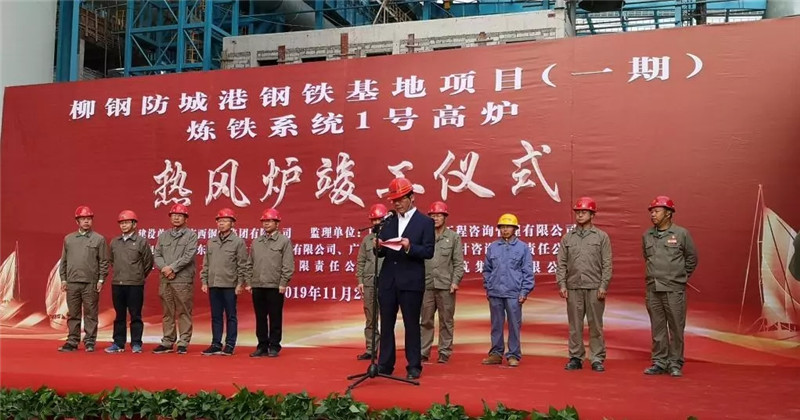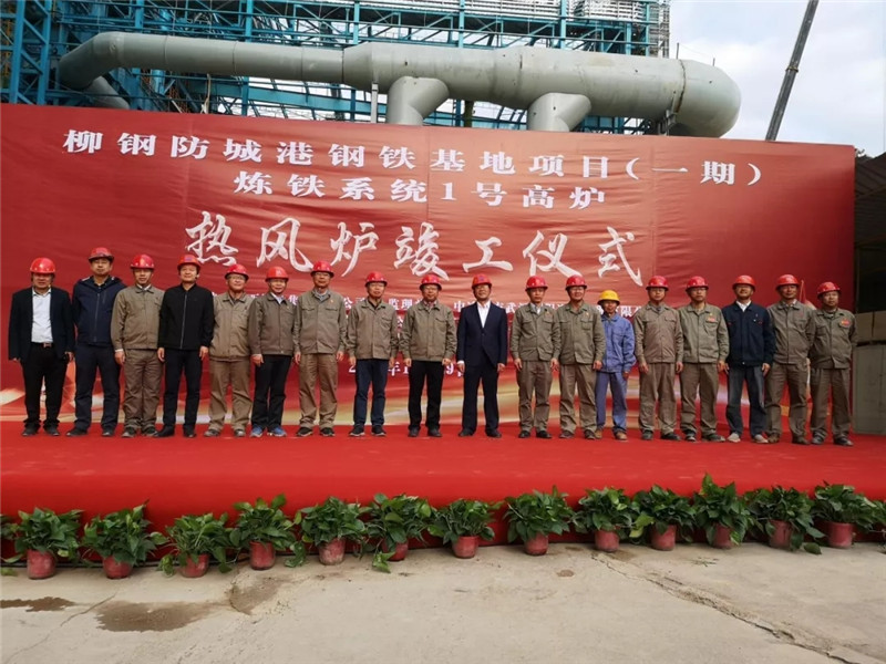 2019年11月29日,柳鋼防城港鋼鐵基地煉鐵系統1#高爐熱風爐舉行竣工儀式。山冶設計董事長魏新民、副總經理宋志順出席了竣工儀式,同時出席竣工儀式的還有柳鋼集團總經理甘貴平,柳鋼集團副總經理、廣西鋼鐵黨委書記、董事長閻駿,廣西華銳鋼鐵工程設計咨詢有限責任公司副總經理、總工程師吳建霖,十一冶建設集團有限責任公司總經理何權等相關人員。