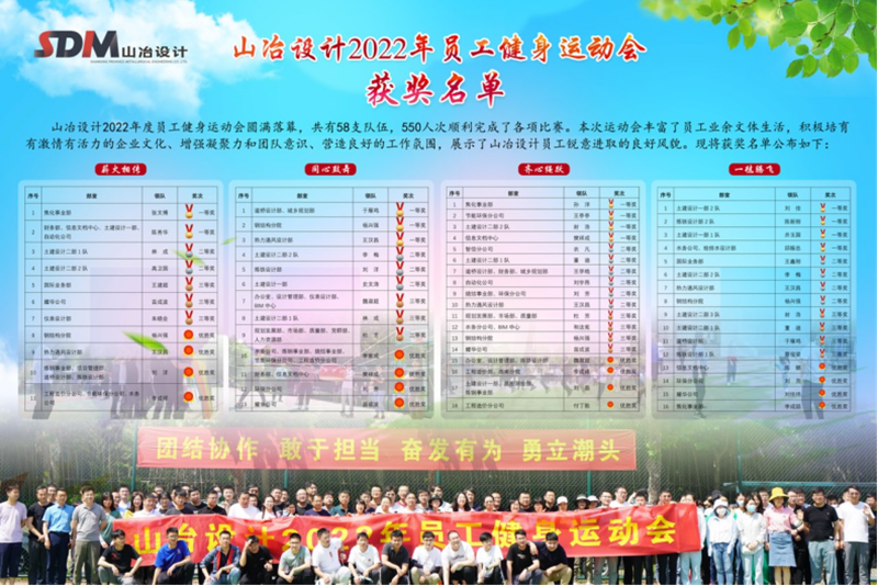 運動會共設置了四個團隊協(xié)作項目,“一毽騰飛”、“齊心繩躍”、“同心鼓舞”和“薪火相傳”,趣味性與挑戰(zhàn)性并存、鍛煉運動員的靈活性、協(xié)調(diào)性和團隊默契。經(jīng)過認真策劃組織,共有58支隊伍,500多名運動員順利完成了各項比賽。全體運動員、裁判員充分發(fā)揮“團結(jié)協(xié)作、敢于擔當、 奮發(fā)有為、勇立潮頭”的精神,取得了優(yōu)異的成績,展示了山冶設計員工銳意進取的良好風貌。