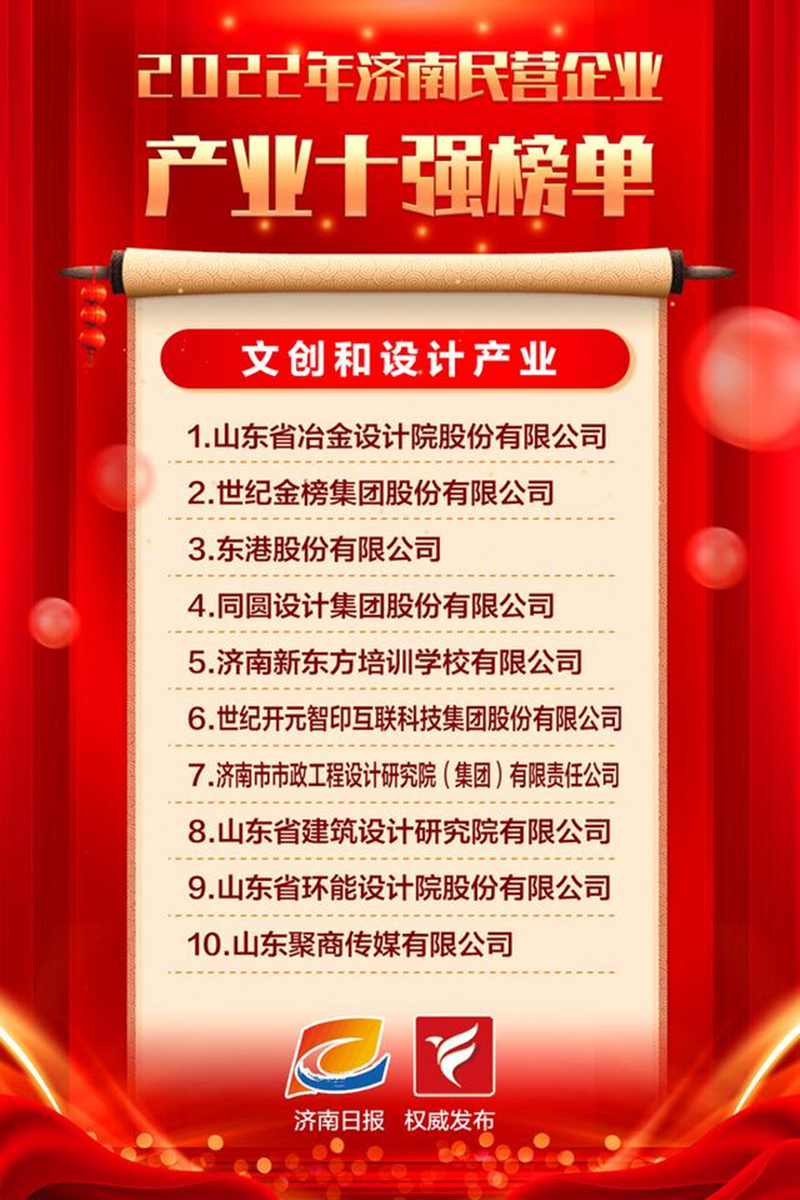 春種一粒粟,秋收萬顆子。金秋十月我公司榮登“濟南市民營企業(yè)百強”榜。這是繼獲得2021年度“濟南市名企品牌百強領(lǐng)跑企業(yè)”“山東省高端品牌培育企業(yè)”等榮譽稱號之后獲得濟南市的又一殊榮。