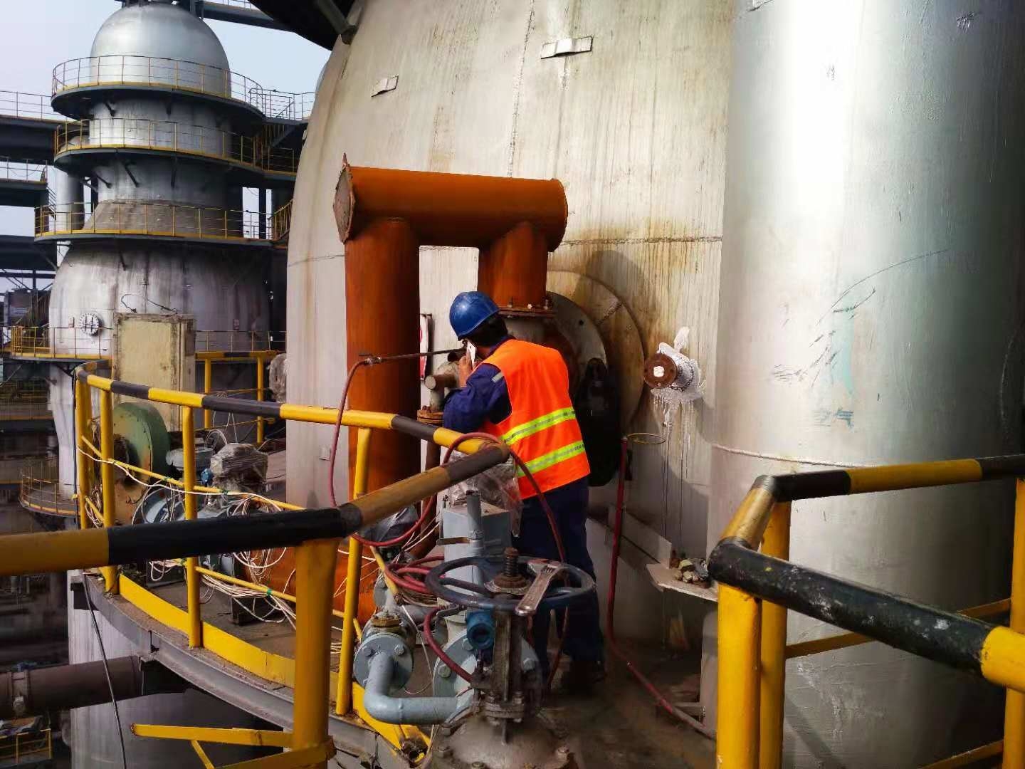 安陽(yáng)沙鋼永興3#、4#580立方米高爐熱風(fēng)爐大修工程于11月15日正式開工,到今天共計(jì)14天的時(shí)間,先后完成了老熱風(fēng)爐系統(tǒng)的拆除及熱風(fēng)爐新建,完成耐材拆50%,鋼結(jié)構(gòu)拆除完成,設(shè)備拆除完成,自動(dòng)化系統(tǒng)拆除完成,新建爐殼已封頂兩座。