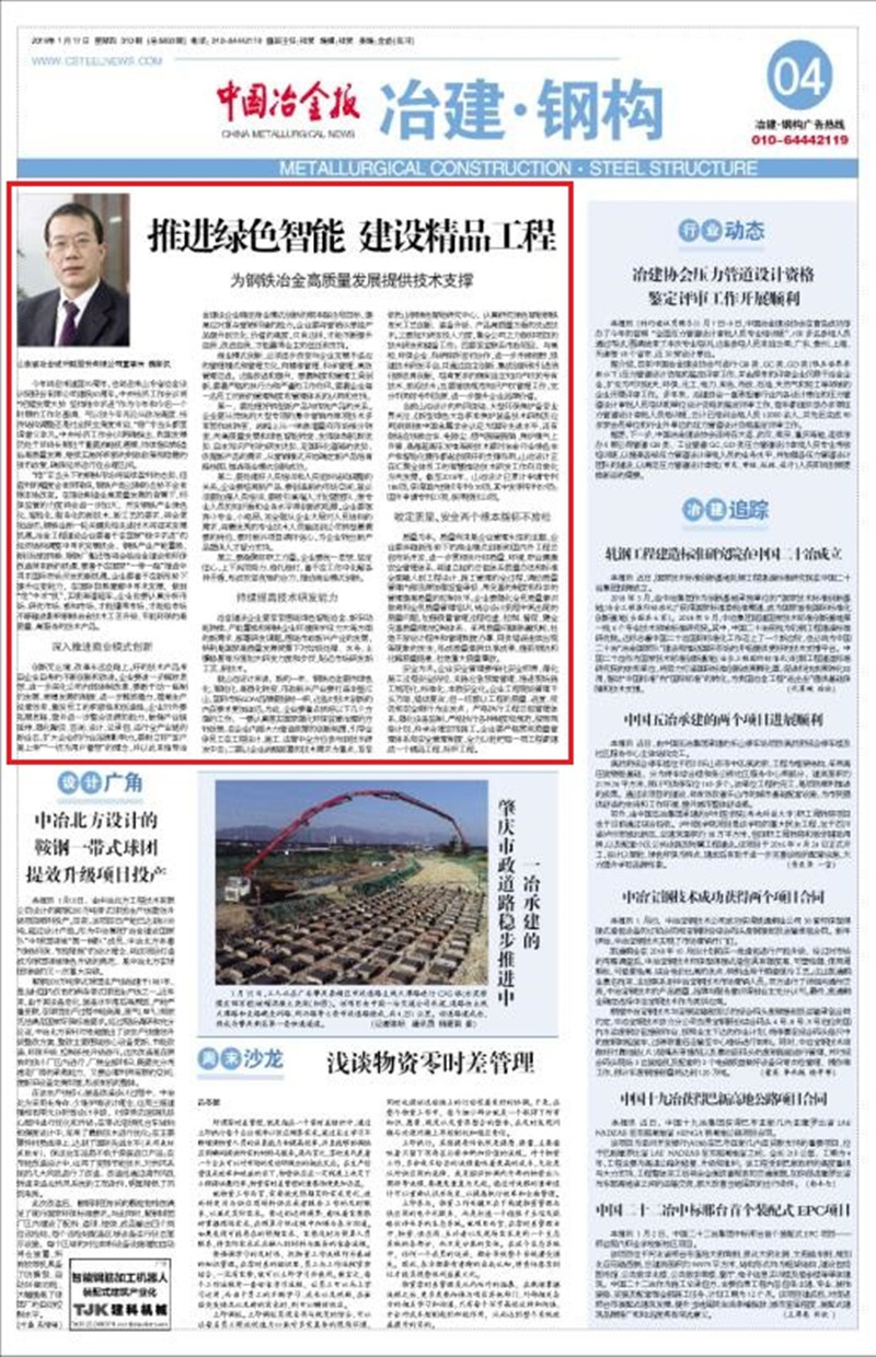 推進綠色智能 建設(shè)精品工程——山冶設(shè)計為鋼鐵冶金高質(zhì)量發(fā)展提供技術(shù)支撐