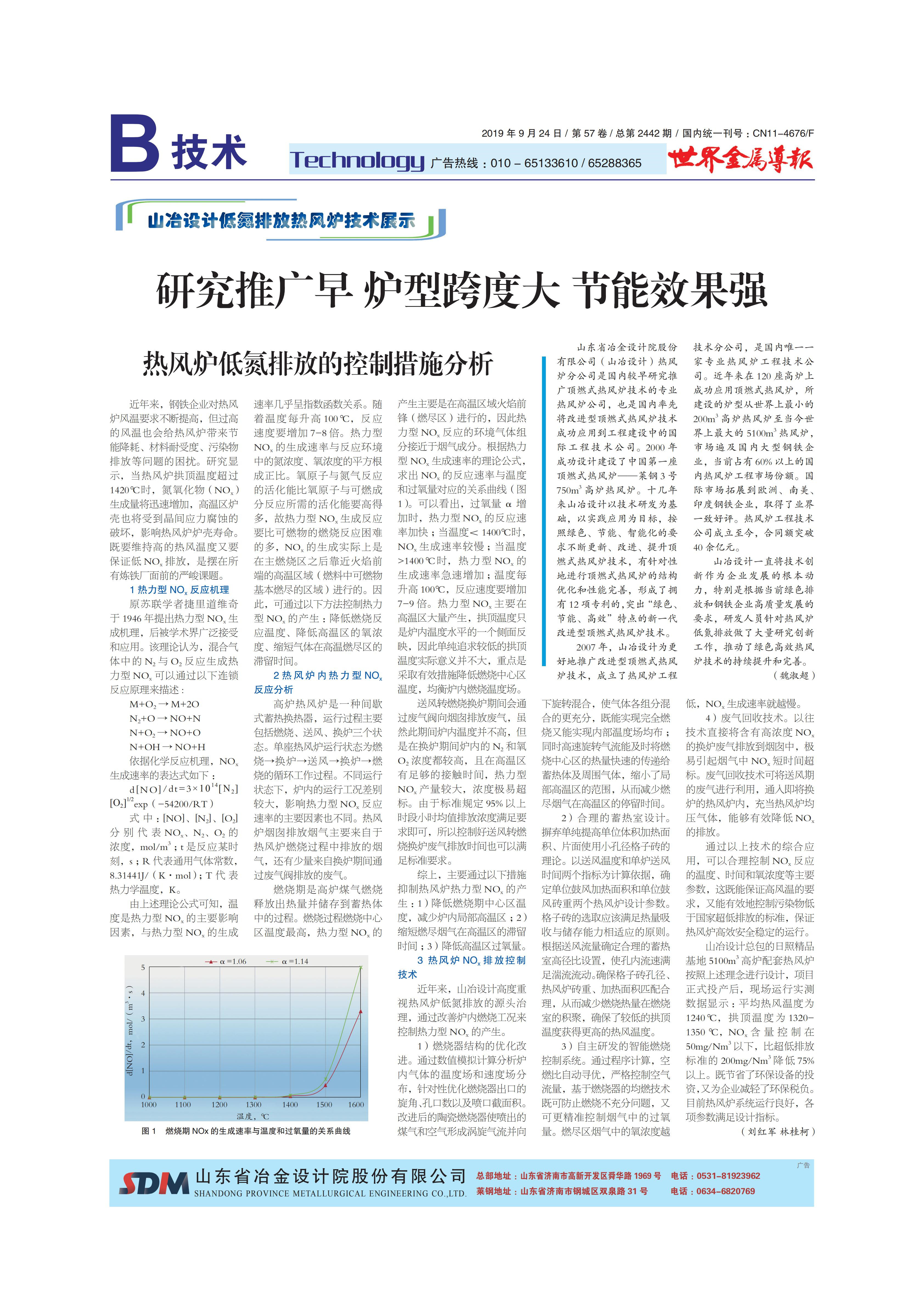 研究推廣早 爐型跨度大 節(jié)能效果強——山冶設(shè)計低氮排放熱風爐技術(shù)展示