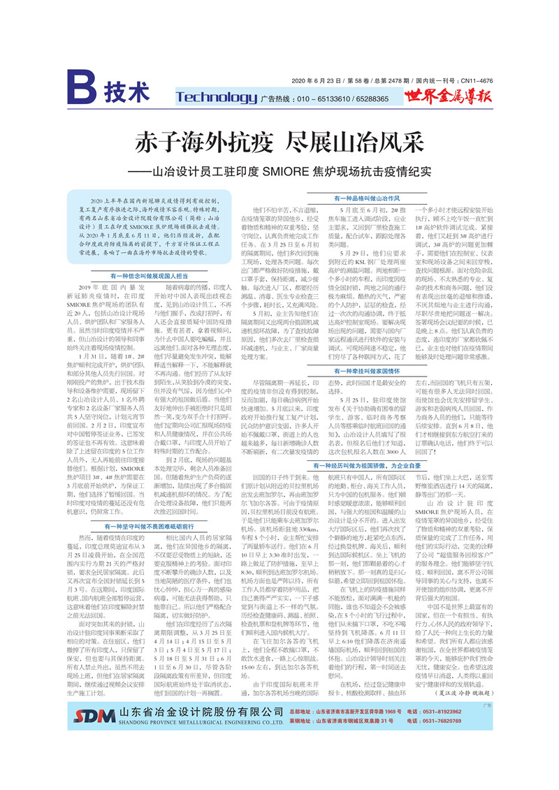 赤子海外抗疫 盡展山冶風(fēng)采——山冶設(shè)計員工駐印度SMIORE焦?fàn)t現(xiàn)場抗擊疫情紀(jì)實(shí)