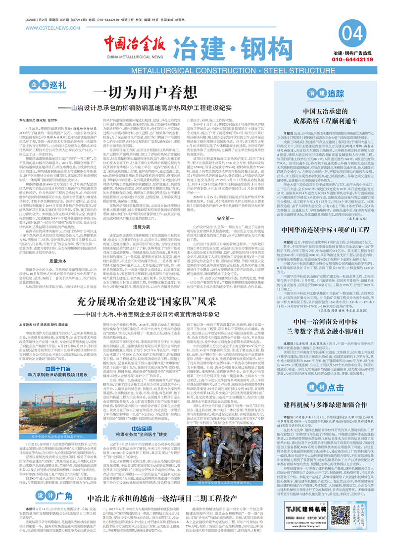 一切為用戶著想——山冶設(shè)計(jì)總承包的柳鋼防城港基地高爐熱風(fēng)爐工程建設(shè)紀(jì)實(shí)