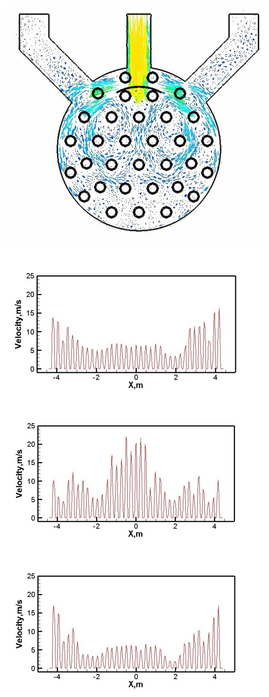 不同擋板結(jié)構(gòu)蓄熱體底部中心線(xiàn)上速度分布